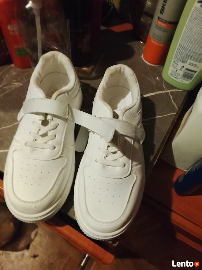 Sprzedam buty białe adidasy młodzieżowe rozmiar buta 38 odbiur osobisty . Widoczne na zdjęciu .cena 50 złBiałogard
